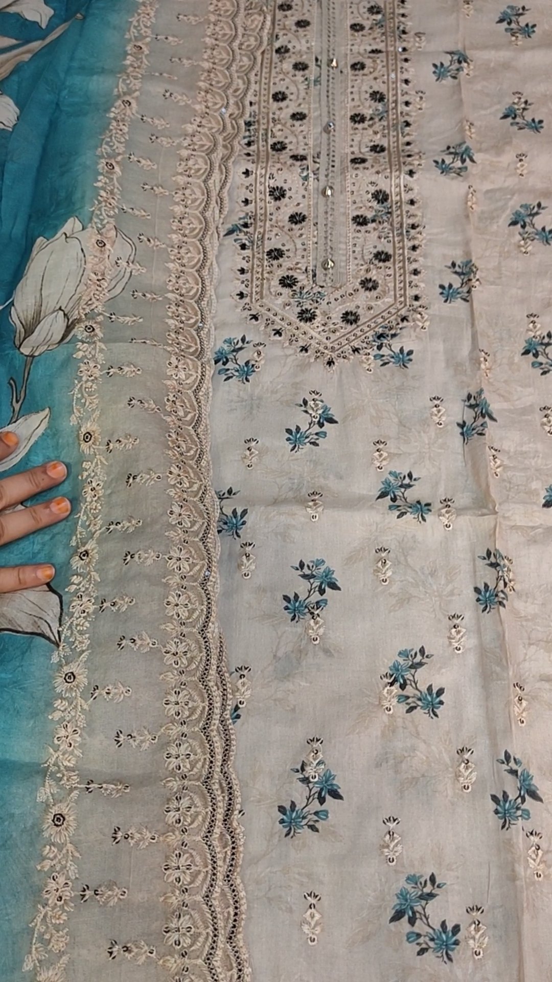 ❤️অসাধারণ ফ্লোরাল প্রিন্টের সাথে চমৎকার কালার কম্বিনেশনে পুরা বডি তে চিটা এমব্রয়ডারি করা আছে।